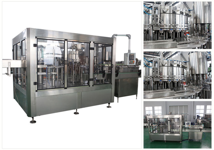 本設備主要用于含汽飲料灌裝,包含沖瓶灌裝和旋蓋三大主要功能。本設備實現全自動運行,能夠適應PET瓶含汽果汁、含汽礦泉水及可樂與雪碧等灌裝。瓶型適應性強,更換瓶型時操作簡單快捷。灌裝方案中采用了等壓灌裝原理,灌裝快速穩定,液位準確,含汽量足。與同類設備相比,本公司產品產量高,運行穩定安全,故障率低,自動化長度高,價格經濟實惠。全機采用優良可編程控制器(PLC)來控制設備的自動運行,送瓶系統由變頻器改變速度,更加穩定可靠。每個部分都有光電單元進行監測,所以更加自動化,操作更加便捷。在此基礎上,更換灌裝單元即可改變灌裝模式到低壓真空灌裝和等壓灌裝等。本設備是飲料企業的選擇。