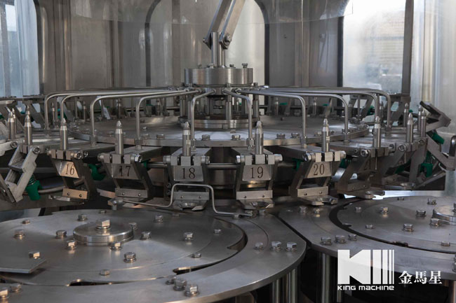 飲用水灌裝機(jī)集沖洗、灌裝、旋蓋于一體,全過程自動化運(yùn)行,主要適用礦泉水、純凈水等不含氣飲料的沖瓶、灌裝、封口連續(xù)作業(yè)。本機(jī)大部分電器系統(tǒng)零件均采用國外優(yōu)良產(chǎn)品,所有與液料接觸的地方均采用優(yōu)質(zhì)的不銹鋼材料制作,主關(guān)鍵部件采用數(shù)控機(jī)床精密加工, 整機(jī)光電檢測各部件的運(yùn)行狀況,無瓶不灌裝,無瓶不送蓋,自動化程度高,操作簡易,具有耐磨、穩(wěn)定、故障率低等特點(diǎn),產(chǎn)品質(zhì)量處于行業(yè)前列,是新老飲料投資者的選擇。