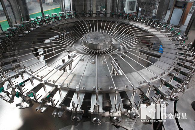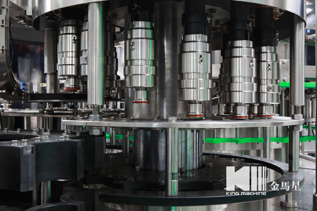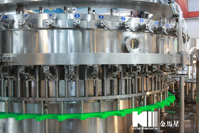 飲用水灌裝機(jī)集沖洗、灌裝、旋蓋于一體,全過程自動(dòng)化運(yùn)行,主要適用礦泉水、純凈水等不含氣飲料的沖瓶、灌裝、封口連續(xù)作業(yè)。本機(jī)大部分電器系統(tǒng)零件均采用國(guó)外優(yōu)良產(chǎn)品,所有與液料接觸的地方均采用優(yōu)質(zhì)的不銹鋼材料制作,主關(guān)鍵部件采用數(shù)控機(jī)床精密加工, 整機(jī)光電檢測(cè)各部件的運(yùn)行狀況,無瓶不灌裝,無瓶不送蓋,自動(dòng)化程度高,操作簡(jiǎn)易,具有耐磨、穩(wěn)定、故障率低等特點(diǎn),產(chǎn)品質(zhì)量處于行業(yè)前列,是新老飲料投資者的選擇。