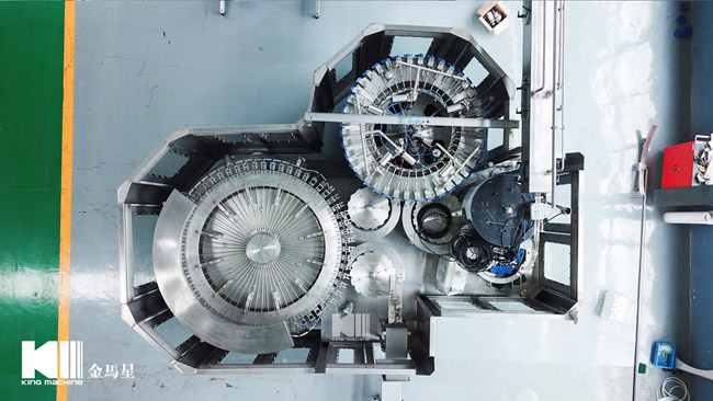 ★整機采用懸掛式卡瓶口輸送機結構,從而使整線輸送瓶子更為可靠。不同瓶型只需調整輸送帶高度及少量的變更附件,更換瓶型更快捷、省力;