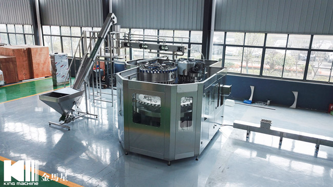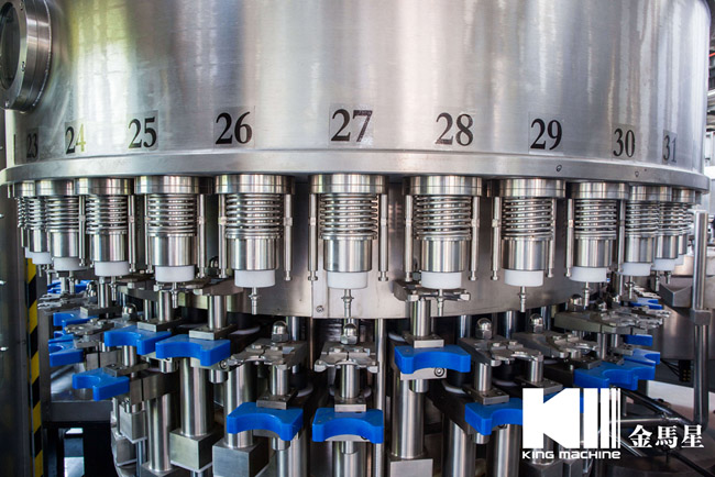 本機主要用于飲料的灌裝作業。本機將洗瓶、灌裝、封口三功能合在一個機體上,全過程實現自動化、適用于聚酯瓶、塑料瓶灌裝礦泉水、純凈水,加上溫控裝置還可以進行熱灌裝。各部分的適用瓶型調整采用手柄轉動實現,輕松自如,簡便快捷。灌裝方式采用了新型的微壓灌裝,使灌裝速度更快更穩定,所以同規格的機器相比本機的產量更高,效益更大。本機采用了優良的OMRON可編程控制器(PLC)控制機器的自動運行,進瓶鏈道采用變頻器調速,與主機變頻器的調速相互配合使進瓶運行更穩定可靠。光電檢測各部件的運行狀況,所以自動化程度高,操作簡便。在此基礎上,本機變更灌裝部分;可以形成低真空灌裝方式和等壓灌裝方式。低真空灌壓方式(Z型機),適用于玻璃瓶,灌裝酒類、醬油等物料,其封口方式可以選配鋁金屬防盜蓋和塑料蓋。等壓灌裝方式(Y型機)適用于聚酯瓶,塑料瓶灌裝含汽飲料,是飲料生產廠家理想的優選設備。