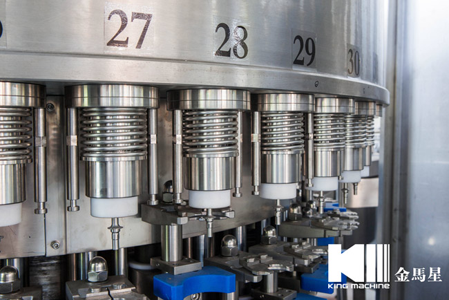 飲用水灌裝機集沖洗、灌裝、旋蓋于一體,全過程自動化運行,主要適用礦泉水、純凈水等不含氣飲料的沖瓶、灌裝、封口連續作業。本機大部分電器系統零件均采用國外優良產品,所有與液料接觸的地方均采用優質的不銹鋼材料制作,主關鍵部件采用數控機床精密加工, 整機光電檢測各部件的運行狀況,無瓶不灌裝,無瓶不送蓋,自動化程度高,操作簡易,具有耐磨、穩定、故障率低等特點,產品質量處于行業前列,是新老飲料投資者的選擇。