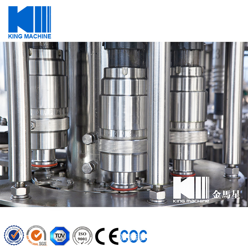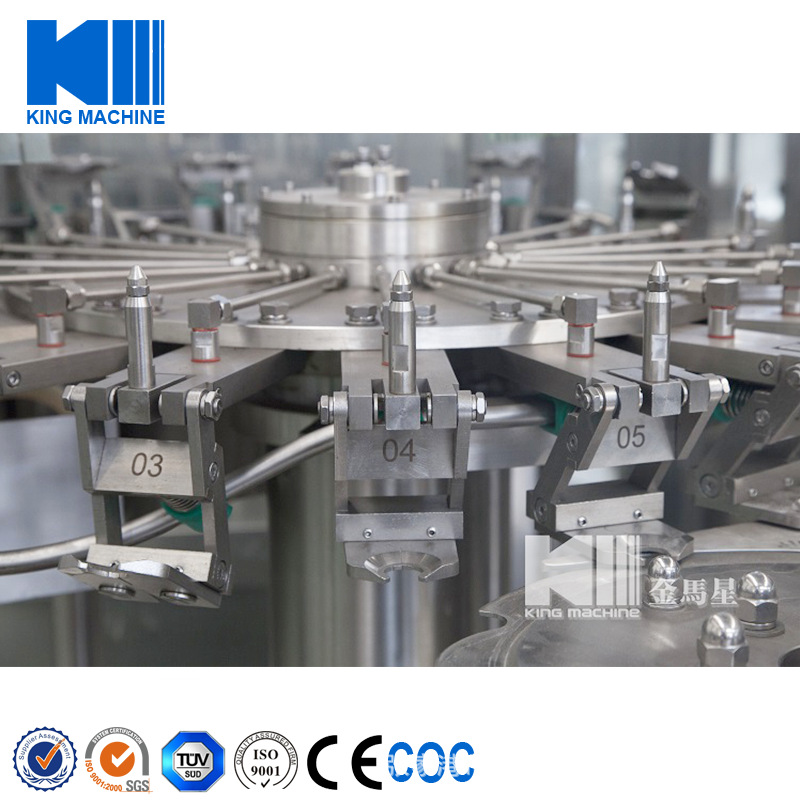 飲用水灌裝機(jī)集沖洗、灌裝、旋蓋于一體,全過程自動化運(yùn)行,主要適用礦泉水、純凈水等不含氣飲料的沖瓶、灌裝、封口連續(xù)作業(yè)。本機(jī)大部分電器系統(tǒng)零件均采用國外優(yōu)良產(chǎn)品,所有與液料接觸的地方均采用優(yōu)質(zhì)的不銹鋼材料制作,主關(guān)鍵部件采用數(shù)控機(jī)床精密加工, 整機(jī)光電檢測各部件的運(yùn)行狀況,無瓶不灌裝,無瓶不送蓋,自動化程度高,操作簡易,具有耐磨、穩(wěn)定、故障率低等特點(diǎn),產(chǎn)品質(zhì)量處于行業(yè)前列,是新老飲料投資者的選擇。