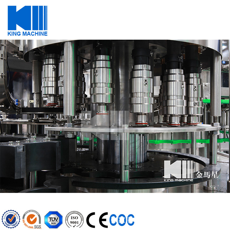 本設備主要用于含汽飲料灌裝,包含沖瓶灌裝和旋蓋三大主要功能。本設備實現(xiàn)全自動運行,能夠適應PET瓶含汽果汁、含汽礦泉水及可樂與雪碧等灌裝。瓶型適應性強,更換瓶型時操作簡單快捷。灌裝方案中采用了等壓灌裝原理,灌裝快速穩(wěn)定,液位準確,含汽量足。與同類設備相比,本公司產品產量高,運行穩(wěn)定安全,故障率低,自動化長度高,價格經濟實惠。全機采用優(yōu)良可編程控制器(PLC)來控制設備的自動運行,送瓶系統(tǒng)由變頻器改變速度,更加穩(wěn)定可靠。每個部分都有光電單元進行監(jiān)測,所以更加自動化,操作更加便捷。在此基礎上,更換灌裝單元即可改變灌裝模式到低壓真空灌裝和等壓灌裝等。本設備是飲料企業(yè)的選擇。